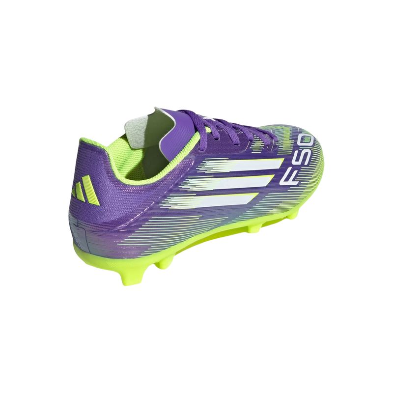 A chuteira de campo infantil F50 League Firm/Multi-Ground da adidas foi desenvolvida para jovens atletas que buscam velocidade e versatilidade em diferentes tipos de campo. Com cabedal em Fiberskin e estampa Sprintgrid, o modelo oferece leveza, resistência e visual moderno. A língua de túnel adaptável proporciona ajuste firme e seguro, garantindo contenção estável durante movimentos rápidos. O forro têxtil assegura conforto prolongado, enquanto o solado Sprintplate 360 leve foi projetado para oferecer tração e ritmo intenso em múltiplas superfícies, incluindo gramados firmes e terrenos variados. Com forma padrão e fecho em cadarço, esta chuteira alia tecnologia e design funcional para máxima performance em qualquer partida de campo infantil.
