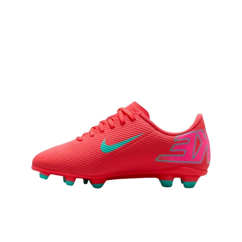 Não importa se você está começando ou apenas jogando por diversão, a chuteira Club coloca você em campo sem comprometer a qualidade. A Nike Jr. Vapor 16 pode ajudar você a mostrar sua velocidade e colocar a bola no fundo da rede. Além disso, o couro sintético na parte superior fornece aderência quando você dribla em altas velocidades. Hora de decolar! O couro sintético no cabedal tem pequenos detalhes texturizados que proporcionam aderência para melhor controle da bola ao driblar em alta velocidade. Placas de plástico com pinos moldados são projetadas para funcionar em campos de grama real e artificial. É versátil para atletas que precisam alternar entre superfícies. Um forro confortável envolve seu pé para uma sensação natural e justa.