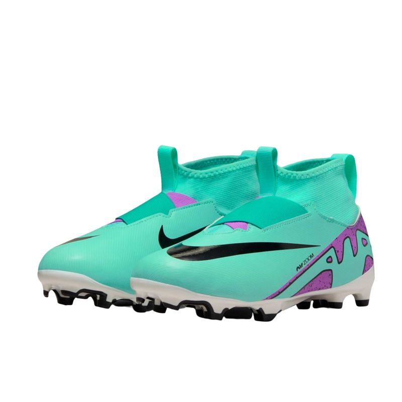 Você tem as habilidades e o jogo, agora mostre e coloque essas chuteiras de futebol Nike Jr. rapidamente - sem precisar de cadarços! E o melhor: Nosso primeiro amortecimento Zoom Air feito para o futebol traz conforto extra e salto para diversos campos de gramado real a gramado artificial. Pela primeira vez em nossa história, a Nike desenvolveu uma unidade Zoom Air totalmente nova, específica para o futebol, no calcanhar. A unidade fica na placa e fornece um nível extra de amortecimento responsivo. Abas e tecido elástico ajudam a abrir o calçado para que seus pés possam deslizar facilmente para e ficarem confortáveis. As tiras cruzadas ajudam a dar um nível extra de suporte e uma sensação de segurança enquanto você joga. Couro sintético proporciona durabilidade para que o calçado resista aos jogos e treinos. Um colarinho de mesh acrescenta suporte extra e conforto respirável. Placas de plástico com travas moldadas são feitas para trabalhar em grama real e campos de gramado artificial. É versátil para jovens atletas que precisam alternar entre as superfícies.