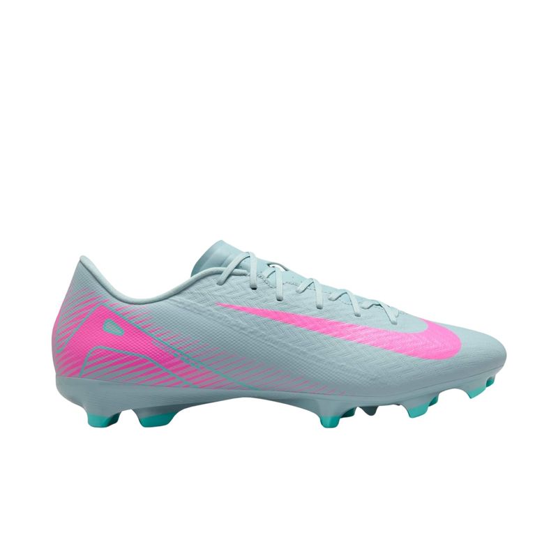 Querendo levar sua velocidade para o próximo nível? Criamos a chuteira Academy com uma unidade Air Zoom melhorada no calcanhar. Ela oferece sensação propulsiva necessária para romper a linha de fundo. O resultado é a Mercurial mais responsiva que já fizemos, para que você possa ditar o ritmo e o passo durante toda a partida. O cabedal é feito com NikeSkin e chevron embutido, que ajuda a proporcionar controle de bola e realmente dá a sensação de jogar futebol descalço. O padrão de tração ondulado é uma série de pinos em cascata, envolvendo mais área de superfície da unidade Air Zoom e, ao mesmo tempo, proporcionando a quantidade adequada de aderência. O maior pino tem a mesma altura que nossos pinos centrais tradicionais, então a tração não é comprometida. Combinamos a tração ondulada com pinos chevron e lâmina evoluídos para ajudar você a parar ao fazer cortes rápidos. Atualizamos o mesh elástico da geração anterior para uma malha adaptável que oferece flexibilidade, fornece suporte e deixa você mais perto da bola. Para uso em superfícies naturais e sintéticas. Palmilha acolchoada.