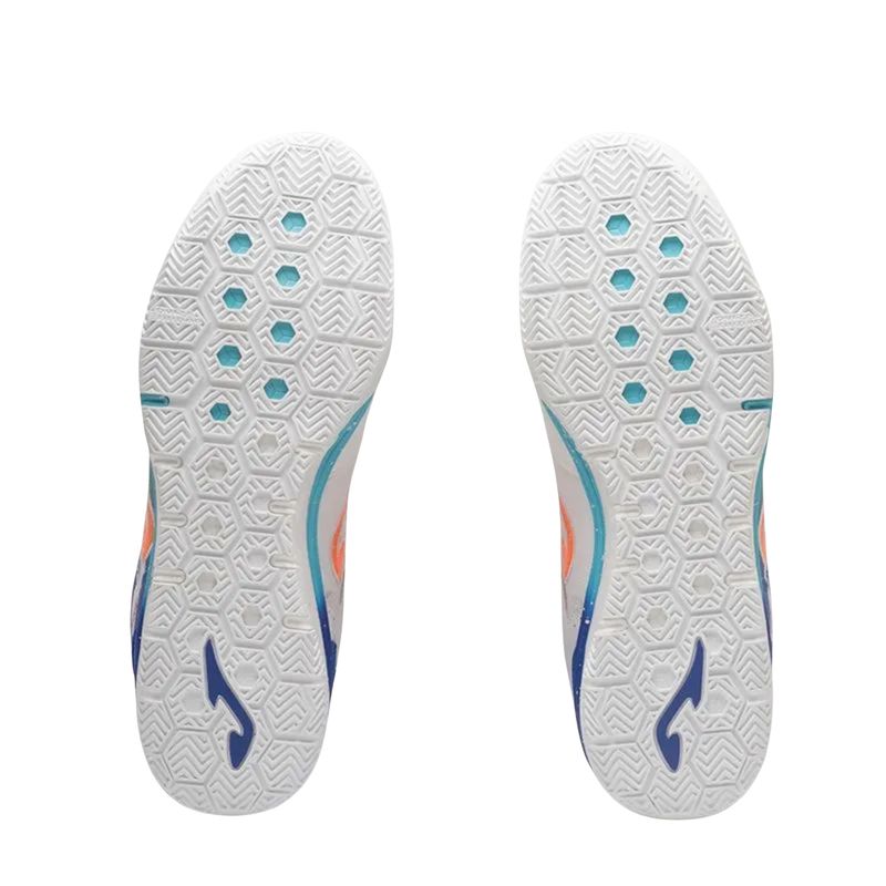 A chuteira Futsal Joma Top Flex Rebound Masculina na cor Branca com detalhes em Azul e Laranja combina tecnologias de ponta com um design moderno para oferecer performance de alto nível nas quadras indoor. Desenvolvida para atletas exigentes, ela proporciona conforto, reatividade e estabilidade desde o primeiro toque na bola. O cabedal em couro com painéis em mesh garante excelente durabilidade, flexibilidade e respirabilidade, reforçada pelo sistema de ventilação VTS. O reforço PROTECTION na região frontal aumenta a resistência nas áreas de maior desgaste. A entressola DUAL REACTIVE, equipada com a tecnologia REACTIVE BALL, entrega amortecimento responsivo e impulso nos movimentos. Já o solado DURABILITY em borracha de alta abrasão oferece tração e aderência ideais para superfícies indoor, sem deixar marcas. Precisa de desempenho profissional no futsal? Aposte na qualidade e inovação da Joma Top Flex Rebound.