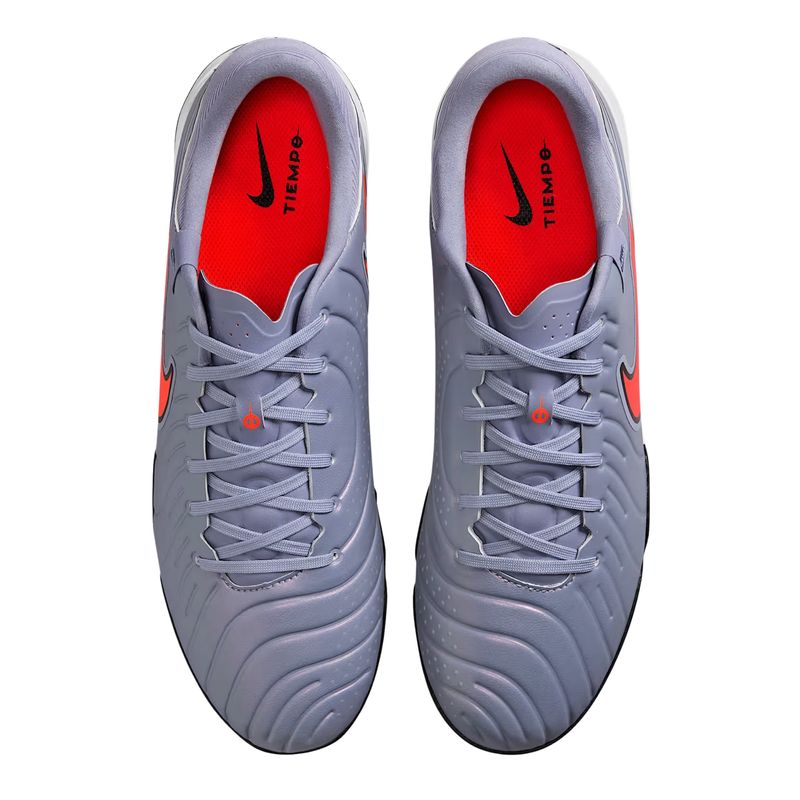A Chuteira Society Nike Legend 10 Academy TF Masculina é a evolução da clássica linha Tiempo, desenvolvida para jogadores que exigem controle, precisão e conforto em gramados sintéticos. Seu cabedal conta com o inovador couro sintético FlyTouch Lite, mais macio que o couro natural e com capacidade de adaptação ao formato do pé sem deformar, oferecendo ajuste natural e sensação premium. Os micropontos localizados no cabedal ampliam as zonas de contato com a bola para passes, chutes e dribles com mais precisão, enquanto o visual limpo e sem acolchoamento excessivo favorece leveza e toque refinado. O interior em microfibra e a lingueta com acolchoamento adicional garantem conforto nas áreas de maior impacto. A sola de borracha foi projetada para oferecer tração eficiente em superfícies sintéticas mais curtas, proporcionando estabilidade e resposta durante o jogo. Com palmilha acolchoada, construção leve e materiais de alta qualidade, a Legend 10 Academy TF é ideal para atletas que atuam em qualquer posição, seja para distribuir o jogo ou defender com firmeza.