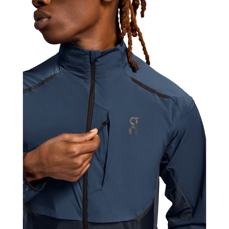 A Jaqueta On Running Weather foi desenvolvida para proporcionar desempenho ideal durante corridas em condições climáticas instáveis. Confeccionada com tecido japonês ultraleve de secagem rápida, combina poliéster e elastano com microventilação para garantir respirabilidade de 360°, mesmo em treinos intensos. O design inteligente inclui construção sobreposta na parte frontal e traseira para melhorar a ventilação, além de cotovelos com pinças espirais que acompanham o movimento natural do corpo. À prova de vento e com apenas 230 g, é a camada de proteção ideal para enfrentar ventos inesperados sem abrir mão do conforto. Conta ainda com bolso no peito com zíper repelente à água, detalhes refletivos para maior visibilidade e possibilidade de ser compactada dentro do próprio bolso, tornando-a prática para transportar em qualquer situação.