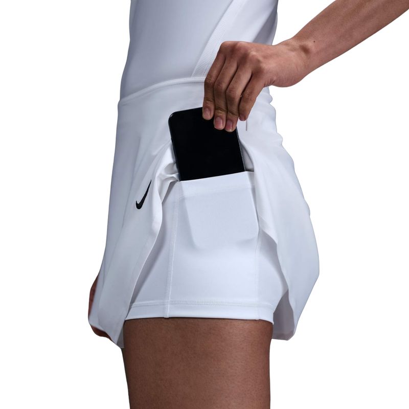A saia com shorts Nike Dri-FIT foi desenvolvida para oferecer conforto, liberdade de movimento e praticidade durante toda a sua prática esportiva. Confeccionada com tecido supermacio e ultraelástico, ela acompanha cada movimento com leveza e flexibilidade, permitindo total foco no seu desempenho. A tecnologia Nike Dri-FIT ajuda a manter o corpo seco e confortável, ao absorver o suor da pele e acelerar sua evaporação. O design com babados proporciona um visual esportivo e moderno, sem comprometer a funcionalidade. Os shorts integrados garantem cobertura em qualquer posição, com bolsos embutidos em ambas as pernas, ideais para armazenar pequenos itens essenciais incluindo a maioria dos modelos de celular com praticidade e segurança. Ideal para treinos, partidas ou uso diário, essa saia é a combinação perfeita entre desempenho e estilo.
