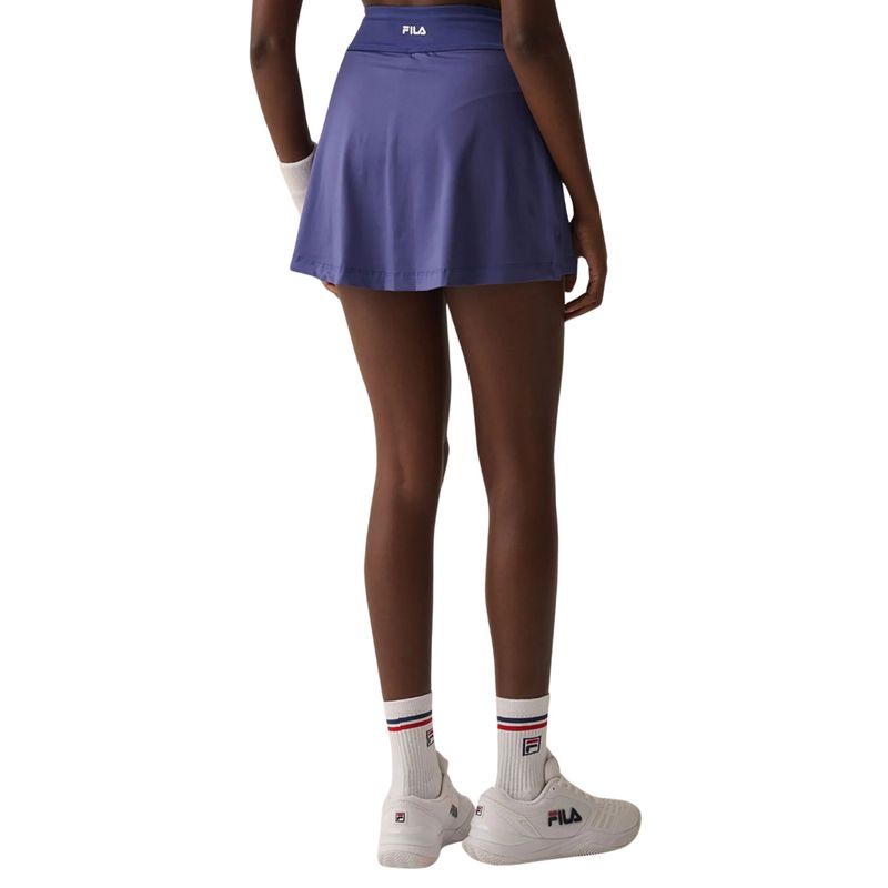 Saia Shorts Feminino FILA Match, confeccionada em malha de poliéster com elastano, e na parte interna em malha de poliamida com elastano, oferece um ajuste confortável e flexível com modelagem regular. O cós de 7 cm proporciona um encaixe seguro e firme, com detalhes como duas pregas reforçadas por travetes e um bolso invertido interno, ideal para guardar bolinhas de tênis. O FILA Letter em termo no cós das costas adiciona um toque final de estilo e autenticidade.