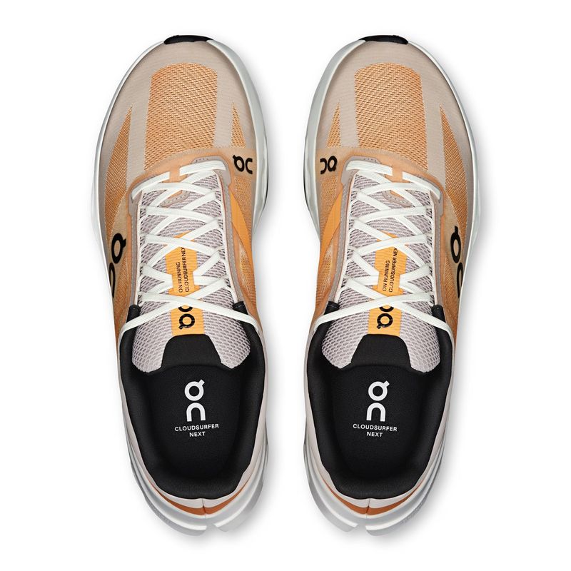 O tênis On Running Cloudsurfer Next Masculino foi desenvolvido para proporcionar leveza, fluidez e resposta em cada passada. Equipado com a entressola CloudTec Phase®, ele garante transições suaves com amortecimento inteligente, já que as nuvens colapsam de forma sequencial ao toque do pé no solo. A superespuma Helion™ oferece retorno de energia imediato na decolagem, tornando as corridas mais ágeis e com menos esforço. A geometria basculante no antepé concentra a propulsão na parte dianteira, otimizando o impulso e a dinâmica da corrida. O cabedal técnico ultraleve, inspirado em modelos de competição, envolve os pés com ajuste anatômico e respirabilidade, proporcionando conforto e estabilidade. Com drop de 6mm, pisada neutra e peso aproximado de 273g, o Cloudsurfer Next é fácil de calçar e adapta-se bem a diferentes formatos de pés. Os elementos de borracha na sola garantem tração e durabilidade em treinos diários, fazendo deste modelo uma escolha eficaz para quem busca desempenho com sensação de corrida leve e natural.